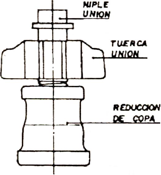 tuerca unión y enrósquelo en la reducción de copa, primero manualmente y termine de ajustarlo utilizando un hombresolo o una llave para tubos número 6.