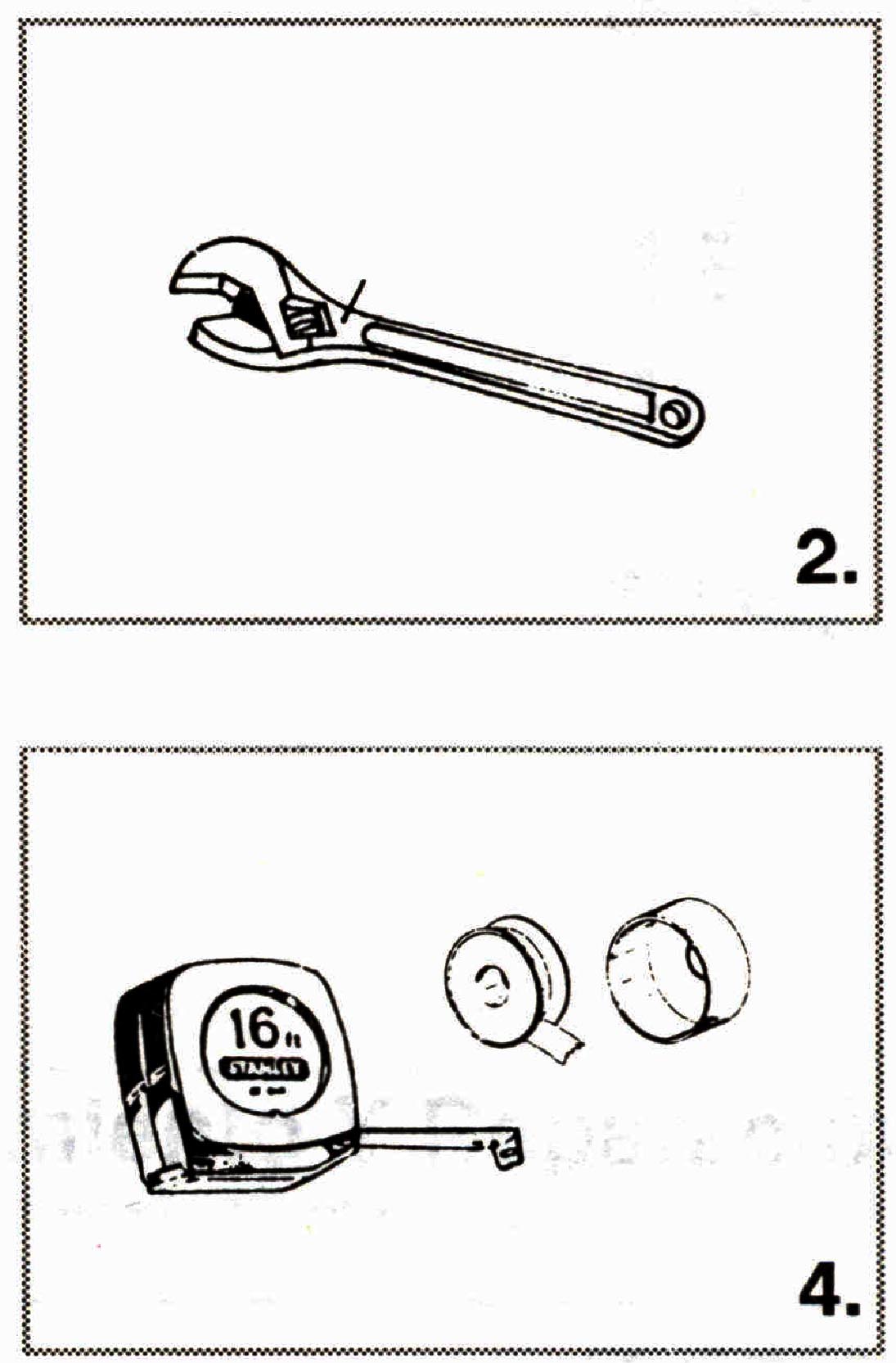 1. Destornillador 2. Llave expansiva 3. Llave para tubos 4. Flexómetro y Cinta Teflón