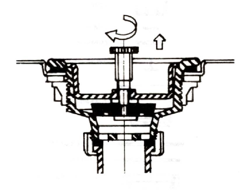 La base perforada de la canastilla actúa como un filtro que impide el paso de material grueso a la red, la cual puede ser removida manualmente para su limpieza. Para estancar el agua en el lavaplatos, basta levantar ligeramente y rotar un cuarto de vuelta, el eje central de la canastilla.