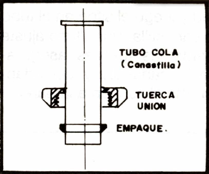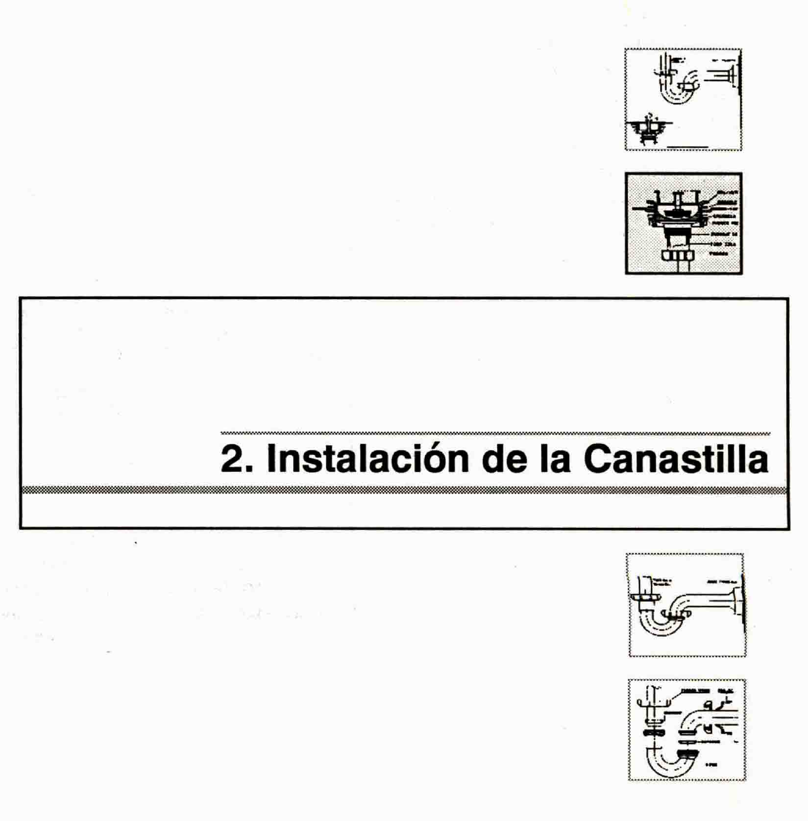A. En el cuerpo de la canastilla, coloque por debajo, el empaque plano de caucho. B. Inserte el conjunto en el desagüe del lavaplatos, por la parte superior. C. Por debajo inserte la arandela antifricción y enrosque manualmente la tuerca aseguradora, ajustando convenientemente para evitar posteriores filtraciones. D. Coloque el empaque de caucho entre la base exterior de la canastilla y la parte escalonada del tubo cola y enrosque la tuerca aseguradora.
