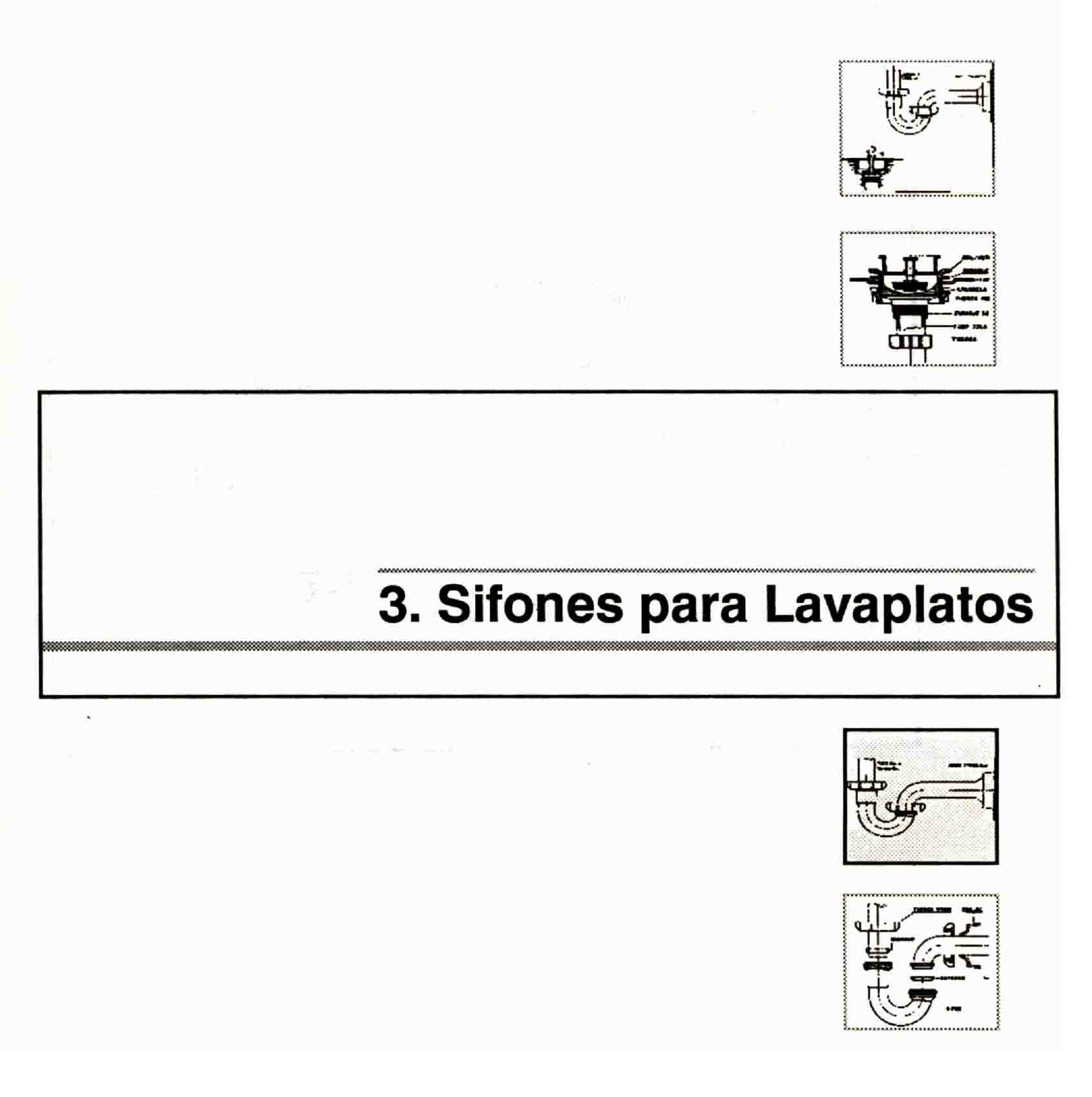 3.1 DESCRIPCION Son accesorios que se instalan entre el tubo coja de la canastilla y el punto de la red del desagüe de los lavaplatos, con el fin de provocar un sello hidráulico que impida el acceso del aire viciado del interior de las tuberías, a la cocina. El tipo de sifón que se utiliza para el desagüe de los lavaplatos, es el sifón en 11 P ", ya que se dan otros tipos, cuya principal aplicación, es a los lavamanos y orinales. 3.2 PARTES. Las partes del sifón, son las siguientes: