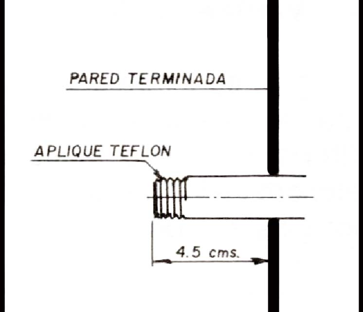 A. Mida y corte un niple de hierro galvanizado, de una longitud tal que sobresalga 4.5 centímetros (incluída la rosca) de la pared terminada. Aplíquele cinta de teflón en las roscas y enrósquelo en el accesorio de la pared.