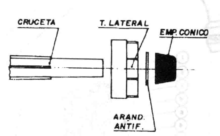 • De cada cuerpo de las llaves, desenrosque la tuerca lateral, retírele junto con la arandela antifricción y el empaque cónico de caucho y luego insértelos en el mismo orden, en las puntas de la cruceta.
