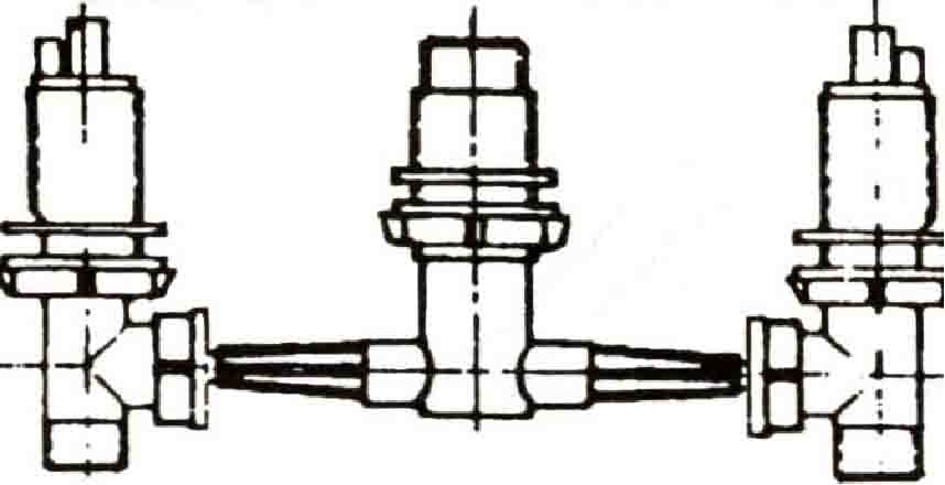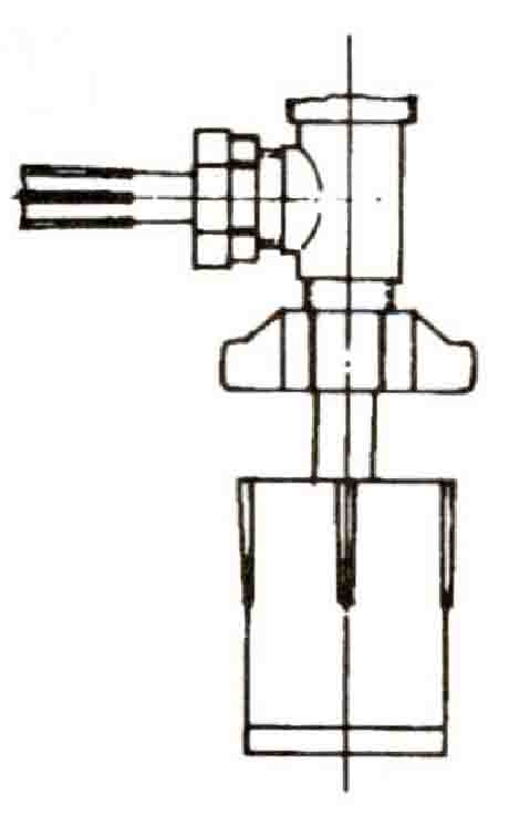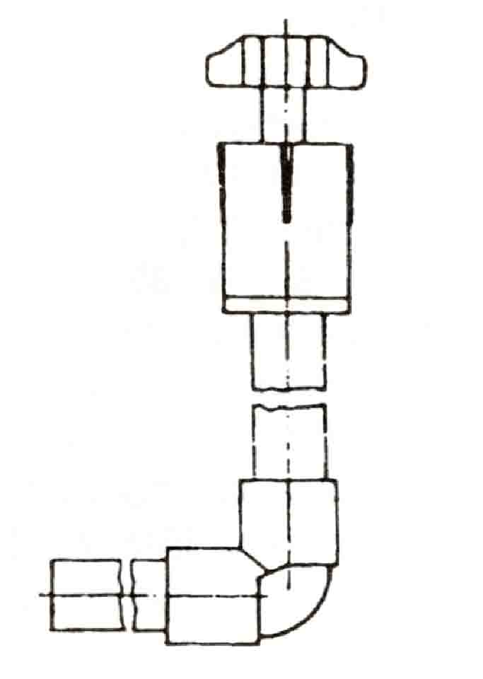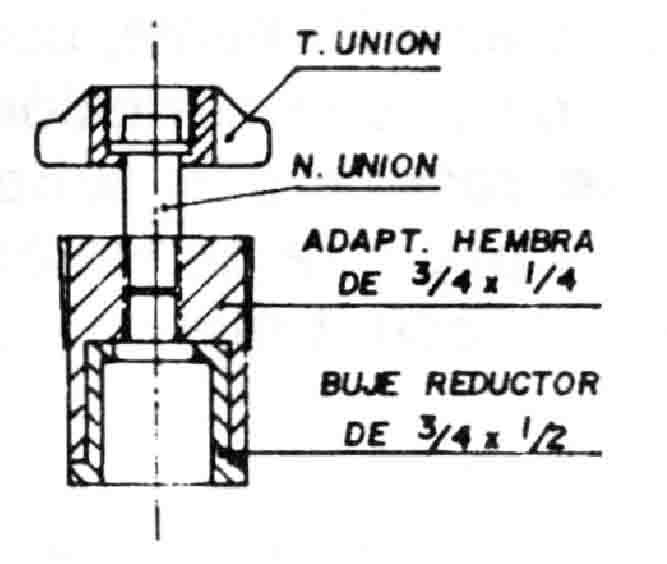 • Aplique cinta de teflón en las roscas de los niples y utilizando un codo de hierro galvanizado de 1/2", forme la pieza que aparece en la figura anterior, ajustando convenientemente con llaves para tubos .