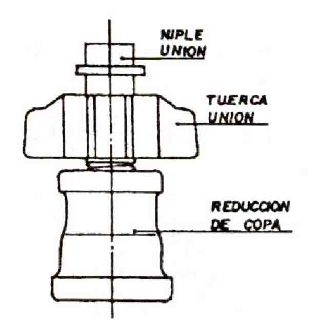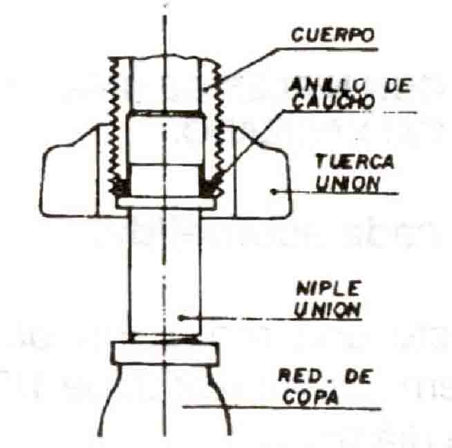 tuerca unión y enrósquelo en la reducción de copa, primero manualmente y termine de ajustarlo utilizando un hombresolo o una llave para tubos número 6.