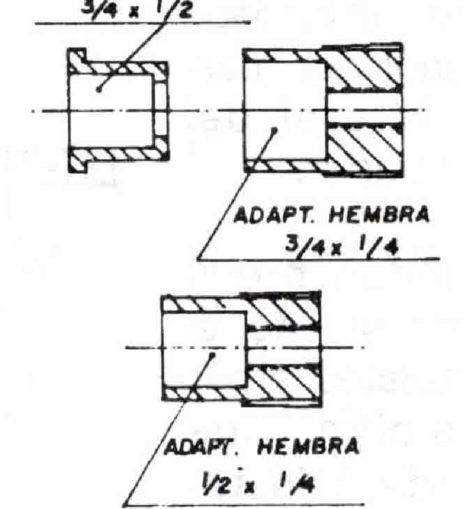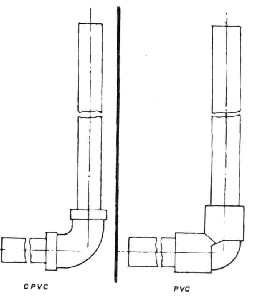 • Suelde los niples y accesorios C.P.V.C., con soldadura líquida C.P.V.C., y los niples y accesorios PVC, con soldadura líquida P.V.C., formando independientemente, los conjuntos que se ven en la figura.