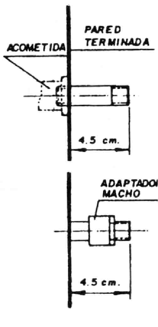 • Si los accesorios de acometida que estan entre la pared; son de hierro galvanizado, corte y rosque niples, de una longitud tal, que después de instalados, sobresalgan 4.5 cms. de la pared terminada.