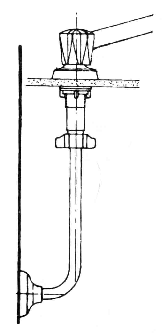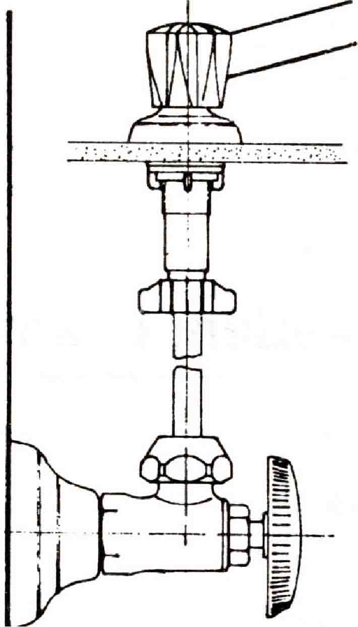 • Por último, permita el paso del agua y pruebe la instalación. D. CON VALVULAS DE REGULACION Para cada acometida: • Corte un ni pie de hierro galvanizado, de una longitud tal, que sobresalga 4.5 cms. de la pared terminada. Si la acometida esta instalada con tuberías plásticas, disponga adaptadores machos en el extremo, conservando la medida. • Enrosque o suelde el niple de la acometida, al accesorio de la pared. • Aplique cinta de teflón en la rosca de la acometida. • Coloque el lavaplatos. • En la válvula de regulación inserte el escudo y enrósquela en el tubo de acometida de la pared, ajustándola adecuadamente con llaves expansivas. Observe que la tuerca quede en posición hacia arriba. • Mida la longitud del tubo flexible de la válvula de regulación para un acople correcto. El tubo flexible debe penetrar en el cuerpo del mezclador, solamente 2 cms. Si es necesario corte el exceso de longitud.