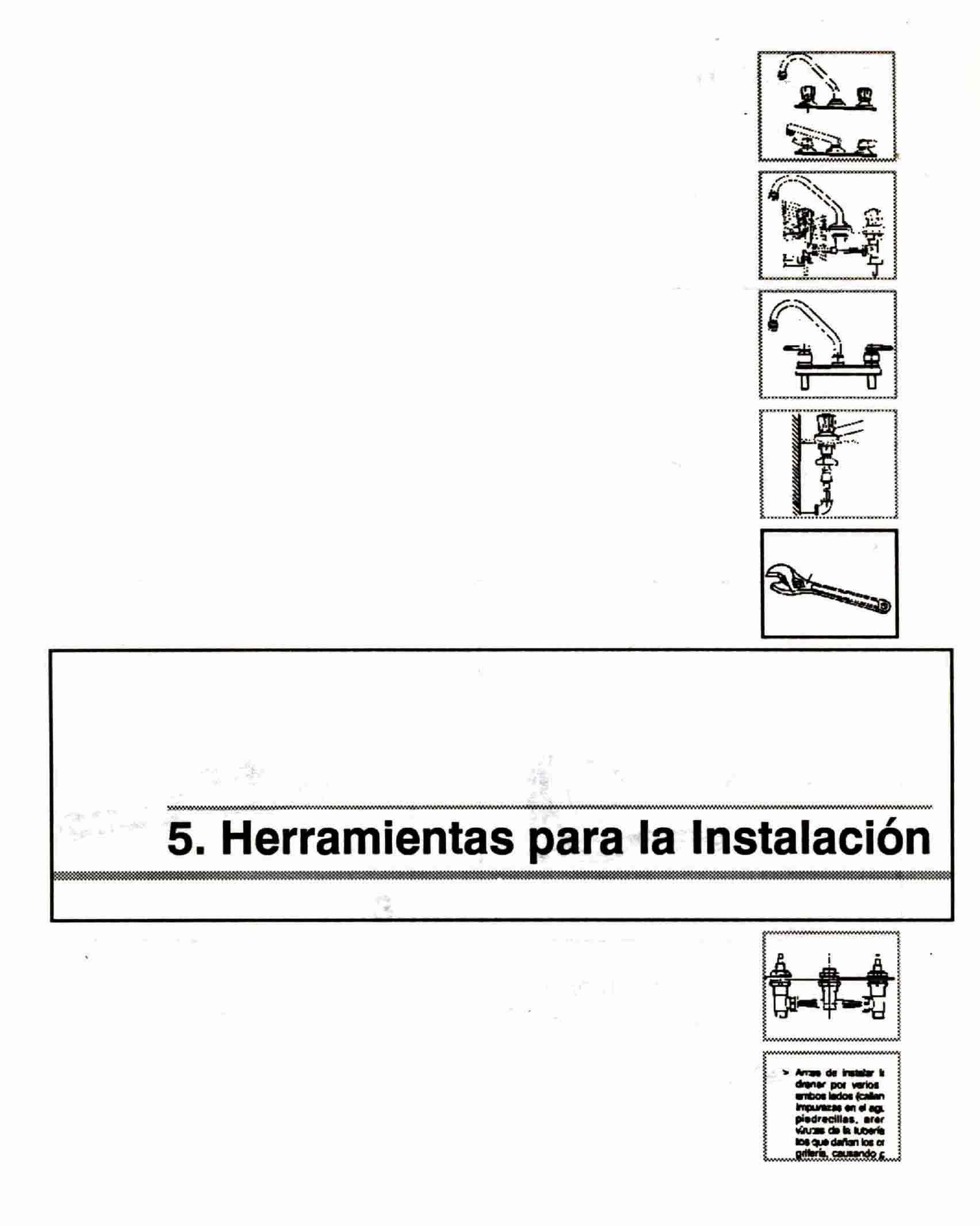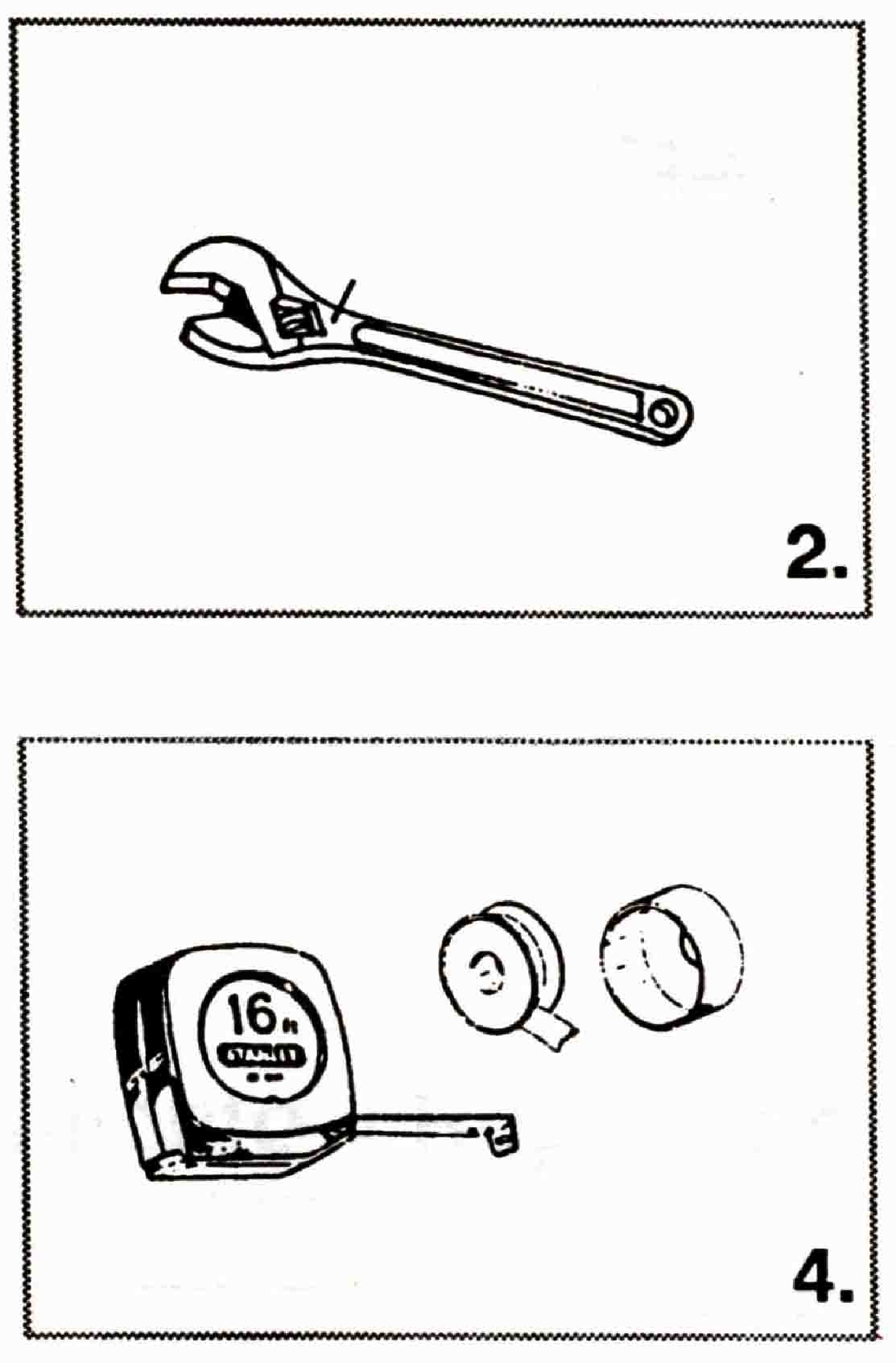 1. Destornillador 2. Llave expansiva 3. Llave para tubos 4. Flexómetro y Cinta Teflón