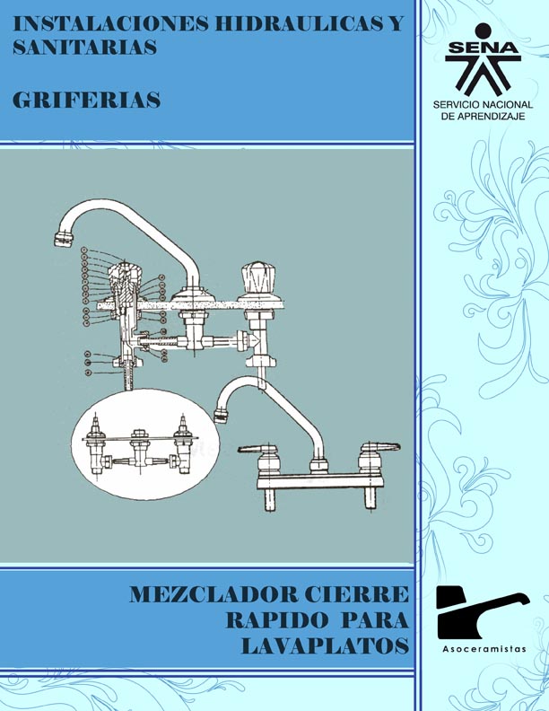 1.1 DESCRIPCION El mezclador cierre rápido para lavaplatos es un sistema de grifería relativamente nuevo que se instala en estos aparatos domiciliarios, con el fin de controlar el flujo de agua de una manera más ágil y eficiente, pues con solo rotar las manijas, media vuelta, es posible obtener agua fría, caliente o tibia. 1.2 CLASES Los mezcladores cierre rápido para lavaplatos, pueden ser clasificados en dos grupos. Así: • Mezcladores cierre rápido para armar en el Lavaplatos y, • Mezcladores cierre rápido para sobreponer en el Lavaplatos La diferencia entre los dos radica en que el primero debe ser armado antes de instalarse por debajo del lavaplatos, y el segundo viene armado para instalarse directamente sobre el lavaplatos.