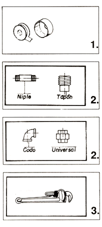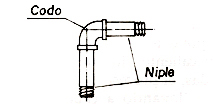 • Aplique cinta de teflón en las roscas de los niples y utilizando codos de hierro galvanizado de 1/2" de diámetro, arme dos piezas como las de la figura anterior.