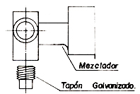 • Aplique cinta de teflón a un tapón de hierro galvanizado de 1/2" de diámetro y enrósquelo en la salida a la bañera del mezclador, ajustándolo con una llave expansiva.