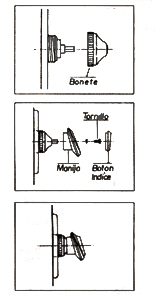 • Coloque la manija con la punta hacia abajo y asegurela con el tomillo de fijación.
