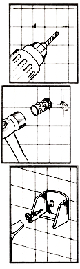 Apoye manual- mente el soporte contra la pared, en el sitio esco- gido y marque la posición de los tornillos. |