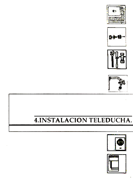 La diversidad de aplicaciones de la teleducha, permite que su instalación se ubique en el sitio de mayor uso de acuerdo a las necesidades. La gráfica, muestra corno ejemplo, una ubicación típica que se llama, aplicación bidé.