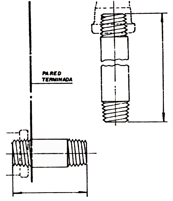 • Si los accesorios de acometida que están entre la pared, son de hierro galvanizado, corte y rosque niples, de una longitud tal, que después de instalados, sobresalgan 4.5 cms. de la pared terminada.