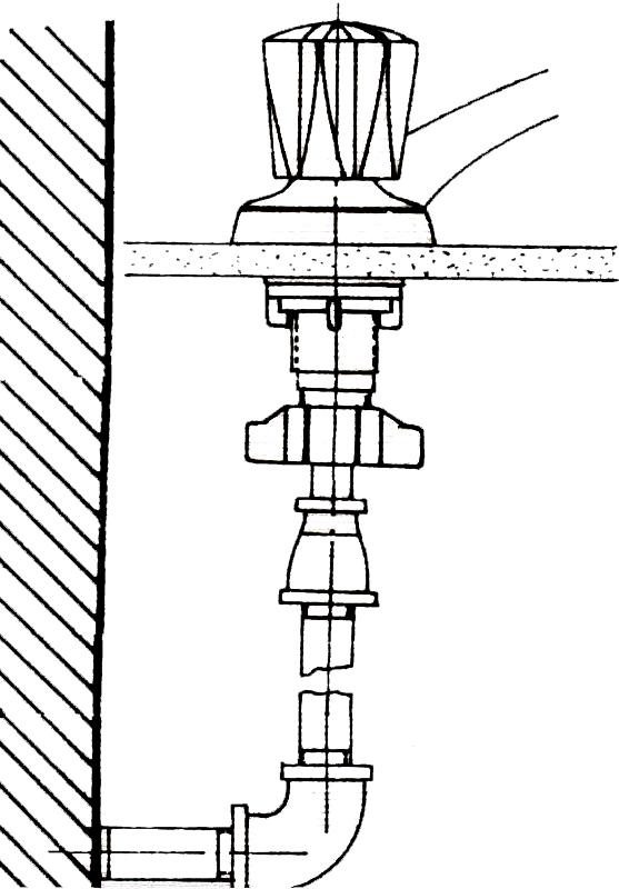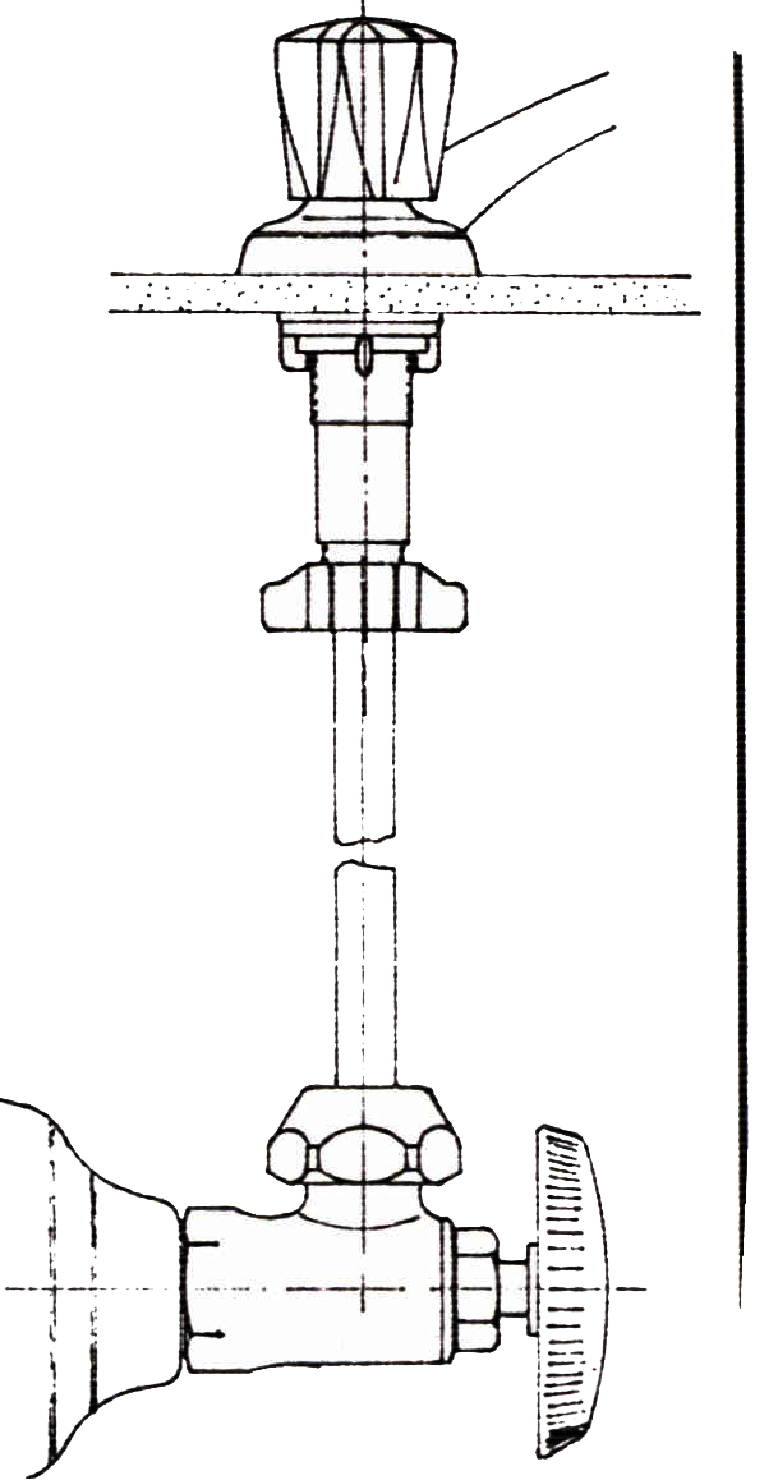 • En la válvula de regulación inserte el escudo y enrósquela en el tubo de acometida de la pared, ajustando la adecuadamente con llaves expansivas. Observe que la tuerca quede en posición hacia arriba.
