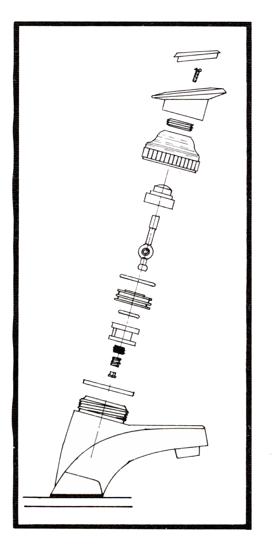 • Con el borde de la pala de un pequeño destornillador, levante el botón índice, desenrosque el tornillo de fijación y retire la manija halándola hacia arriba. • Desenrosque manualmente la tuerca bonete, con ella saldrá también el anillo de graduación. • Retire la unidad de control halándola de la palanca bola, si el disco móvil se queda en el interior del mezclador, retírelo y observe las partes que conforman la unidad. • Revise el anillo de caucho exterior colocado en el cuerpo del disco fijo y el anillo de caucho colocado sobre la parte superior del disco móvil, reemplace el que encuentre deteriorado, para evitar escapes por el área de la manija. • Revise el disco móvil, si se encuentra rayado o desgastado, en la superficie de selle, reemplácelo para evitar el goteo por la nariz del mezclador.