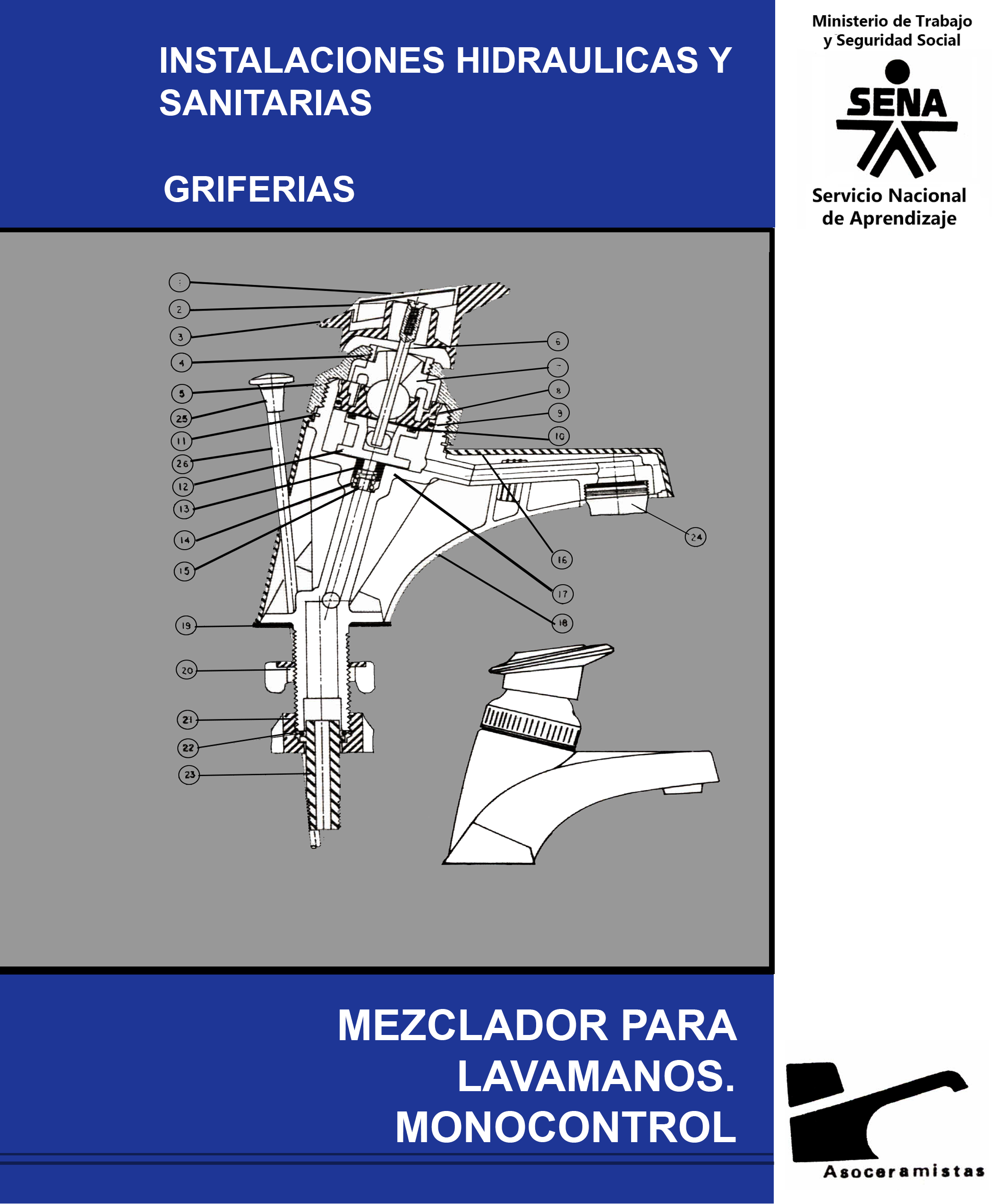 El mezclador mono control para lavamanos, esta conformado de las siguientes partes.