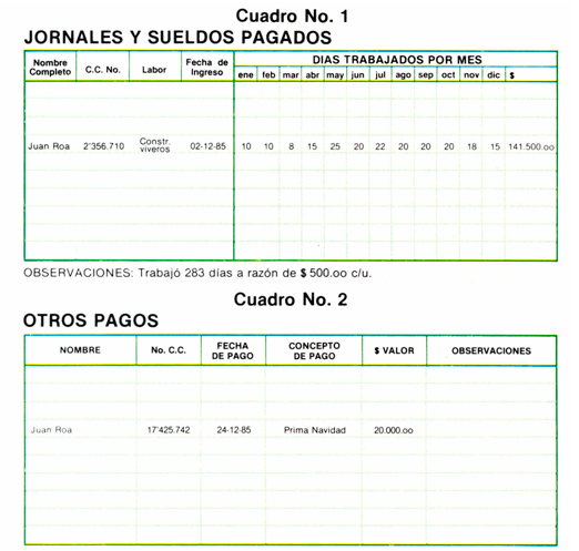 TRABAJO: • Nombre y número del documento de identidad del trabajador. • Fecha de ingreso. • Labor. • Número de jornales.