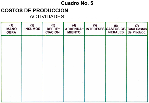 5. DISEÑO DE CUADROS PARA CADA UNO DE LOS COSTOS DE PRODUCCIÓN